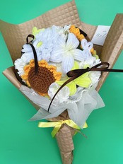 ニットフラワーとワイヤーフラワーで作成した花束になります。