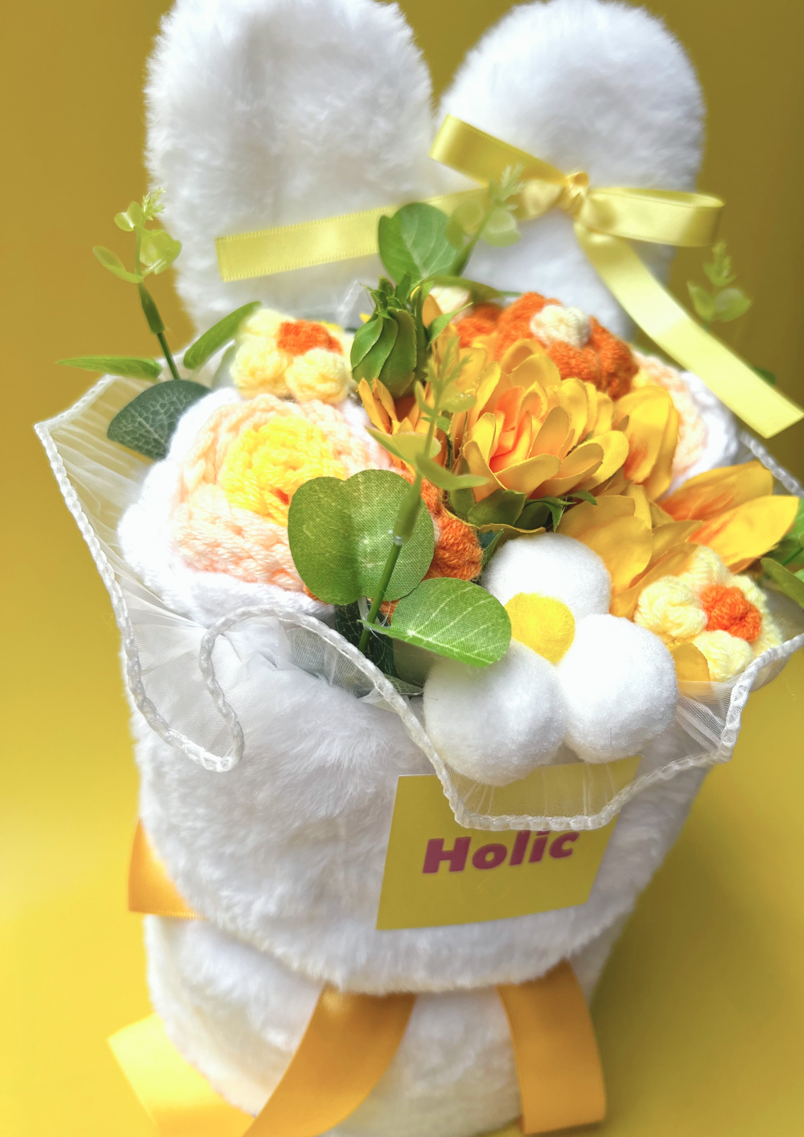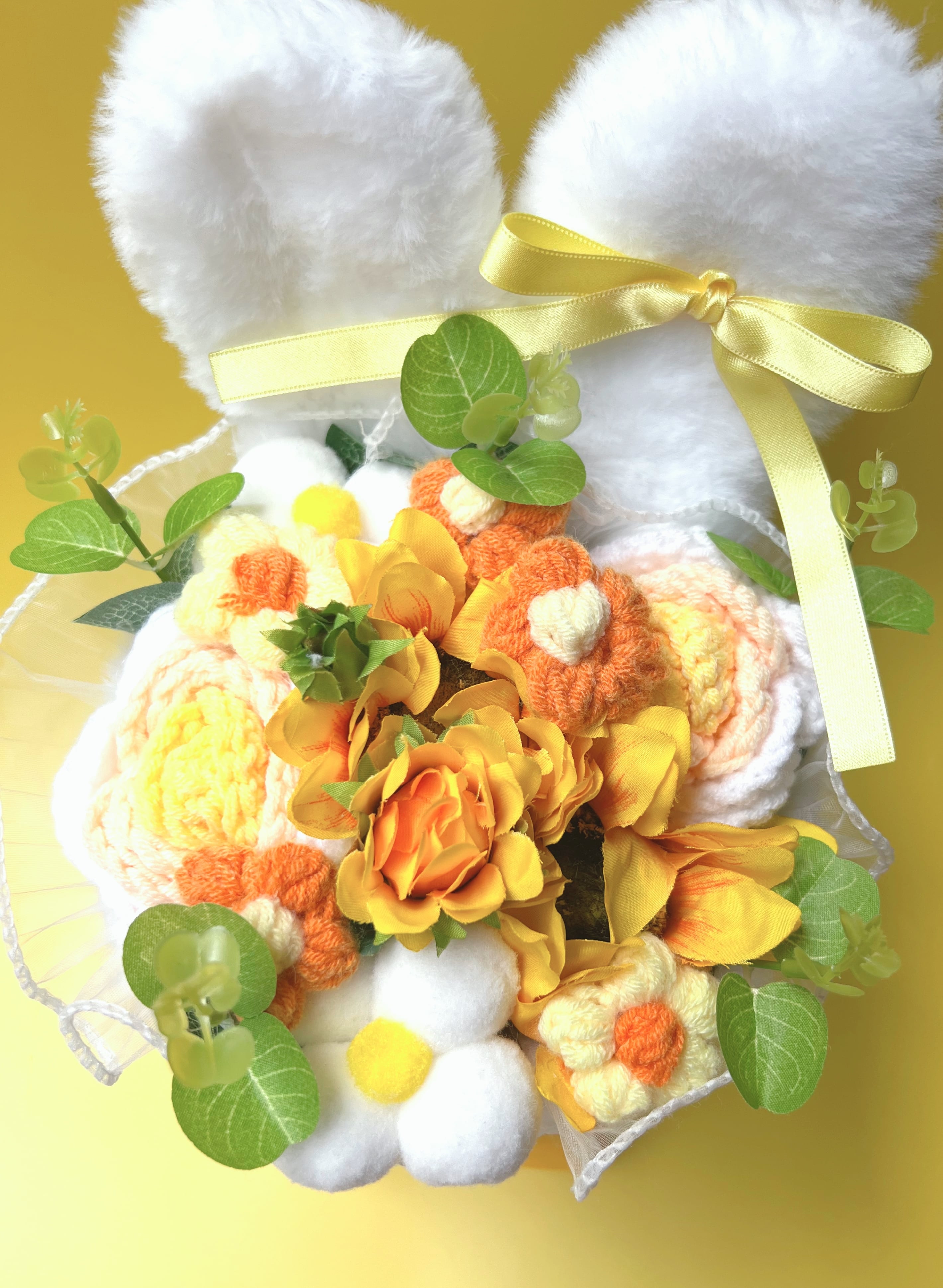 ニットフラワーとアーティフィシャルフラワー(造花)で作成した花束になります